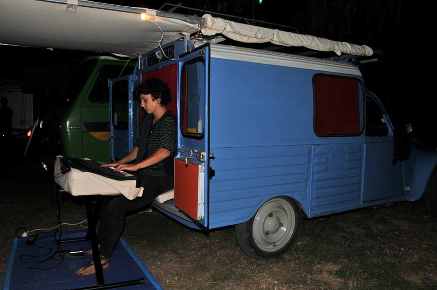Und wenn es auch nur eine kleine Zuhörerschaft war - internationaler wird ein Publikum kaum sein können, als Judith am Abend ihren 2CV Citroen Kastenwagen umdrehte und ein kleines Konzert am Piano unter Einbindung ihres Fahrzeugs gab.