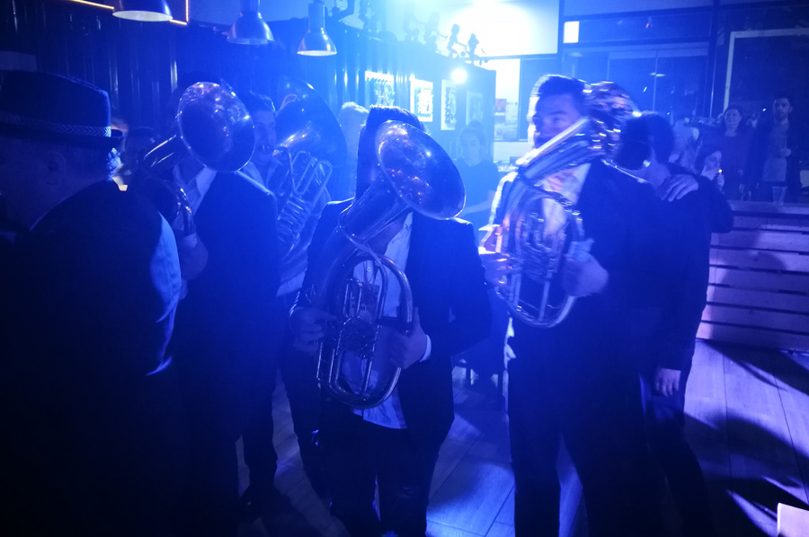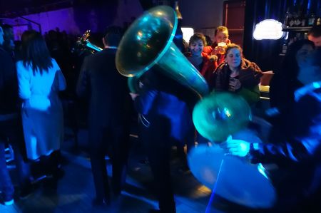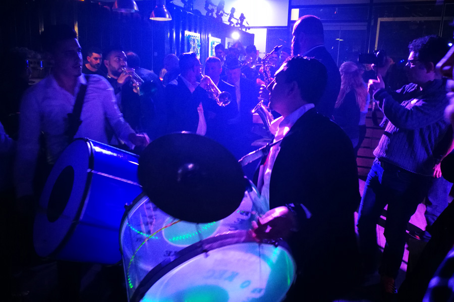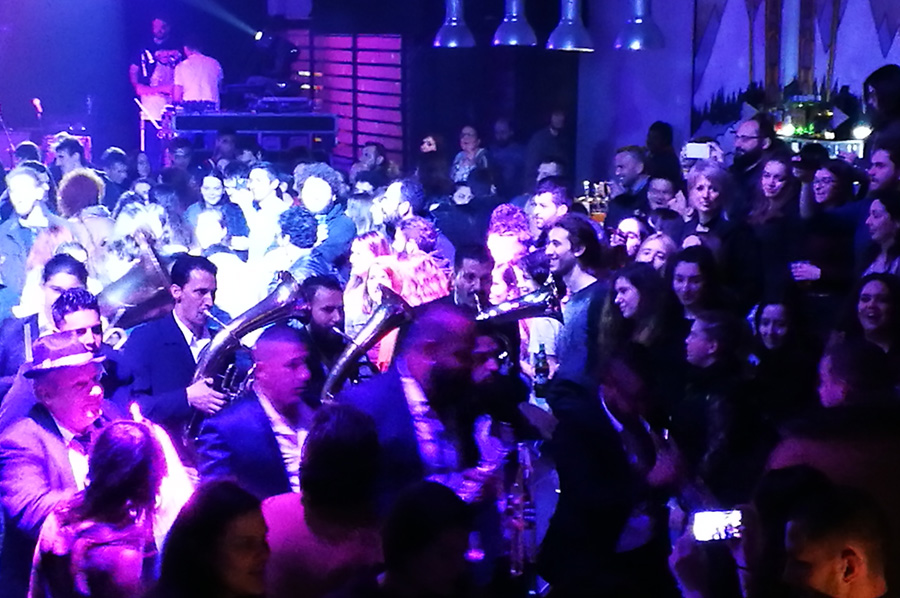 Nach dem Auftritt der Gruppe Calgija Sound System aus der Republik Mazedonien im Rahmen des Balkan Festes entstand im hinteren Teil des Veranstaltungsortes plötzlich große Unruhe, die schnell im Sound eines lebendigen Orchesters unterging, das sich den Weg durch das Publikum bahnte: Das Vesela Druzina Orkestar, ebenfalls aus der Republik Mazedonien.