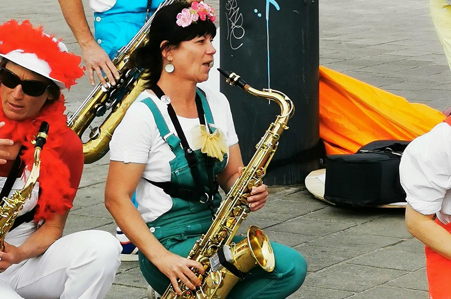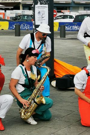 Meistens wird Straßenmusik von Instrumentalisten oder Sängern, gelegentlich auch von Alleinunterhaltern vorgetragen, die Bandbreite ist hierbei extrem weit. Wenn die Musiker alleine anstatt als kleine Gruppe auftreten, nutzen sie mitunter Tonträger für die Begleitmusik, so wir den Saxophonisten in Marseille erleben durften, der wenige hundert Meter weiter sein Können zum Besten gab. Der Saxophonist hatte sich auf Platz am Hafenbecken aufgebaut und präsentierte sein Solo, wofür er indirekt von Passanten Geld erbat, dass meist von den Zuhörern in einen Huts oder in den Instrumentenkasten gelegt wird.