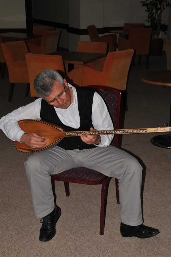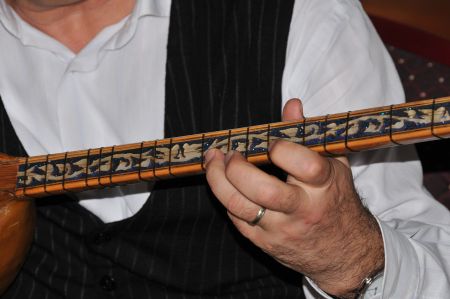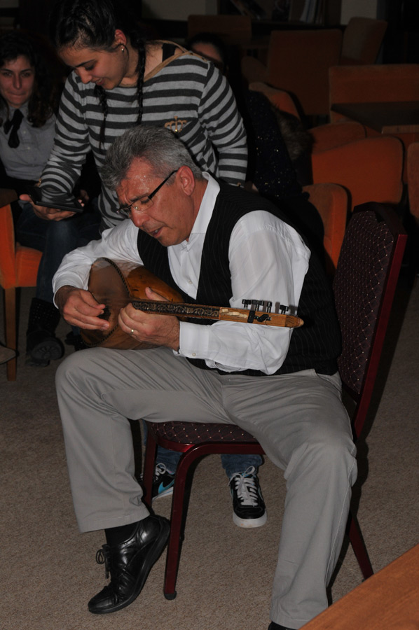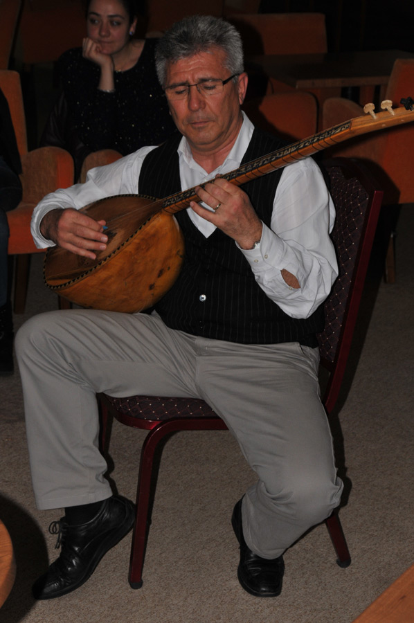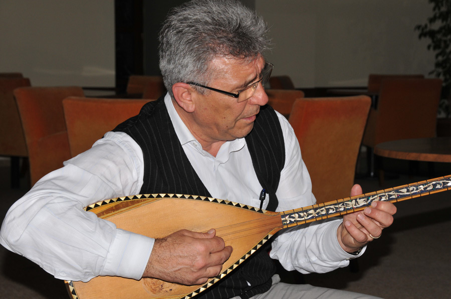 Die Seminarteilnehmer hatten sich nach einer ersten Ankündigung in der Cafebar eingefunden, um dann den Klängen dieser speziellen Langhalslaute zu lauschen, die vom Balkan bis nach Afghanistan verbreitet, den doch so typischen Klang orientalischer Weisen wiederspiegelt.
