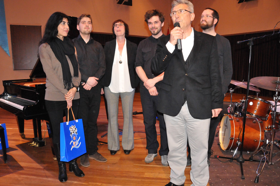 So war das Publikum dann auch fast überrascht, als nach dem einstündigen Auftritt auch das Ende des Konzerts erreicht war. Die Gruppe Pablo Held bedankte sich beim Publikum und entschwand mit viel Applaus hinter der Bühne. Prof. Erol Esen schloss die Veranstaltung mit einigen abschließenden Worten, nicht ohne den Musikern eine obligatorische Urkunde ihres Auftritts inAntalya verliehen durch die Akdeniz Universität zu überreichen. Auch die Konsulin Karin Köller schloss sich seinen Worten an und bedankte sich persönlich bei den Musikern, die sich auch Zeit nahmen mit weiteren Gästen zu sprechen oder sich für Fotos zu platzieren.