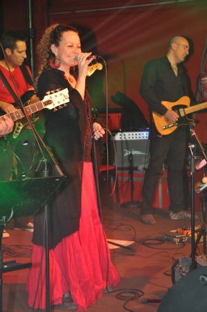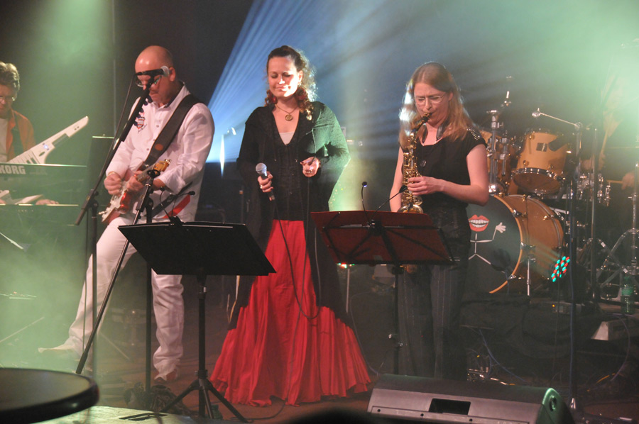 Mit dem Auftreten von Carolin Roth gewinnt das Konzert an zusätzlicher Energie und die enorme Präsenz von Caro auf der Bühne tut ihr Übriges dazu. So ist es nicht verwunderlich, dass die Zuhörer schon bald tanzend und klatschend die Musiker nicht nur akustisch begleiten. So folgen „Yearning for life“, „And that´s allright“, „Bad things passing by“, “6to8” und “Izmir”, einem Song der inspiriert durch Auftritte in Izmir während des Frauenfestivals 2011 entstanden ist. Nächster Höhepunkt ist der Song „Up tot he ashes“, in dem auch die Gitarre von Kurt Härtl wieder eine tragende Rolle spielt. Es folgen „I feel the light“ und „Without you“, mit viel Einsatz und Vergnügen vorgetragen als letzte Stücke dieses Abends 10 Jahre Backdoor Connection.