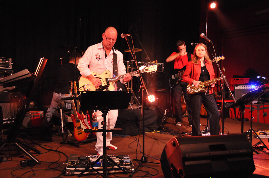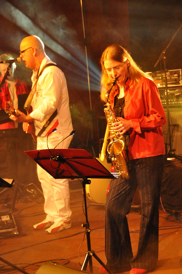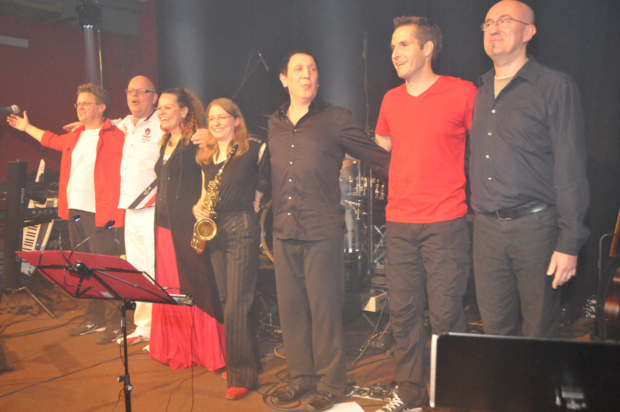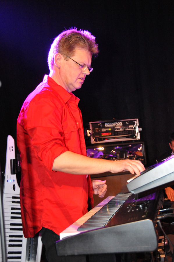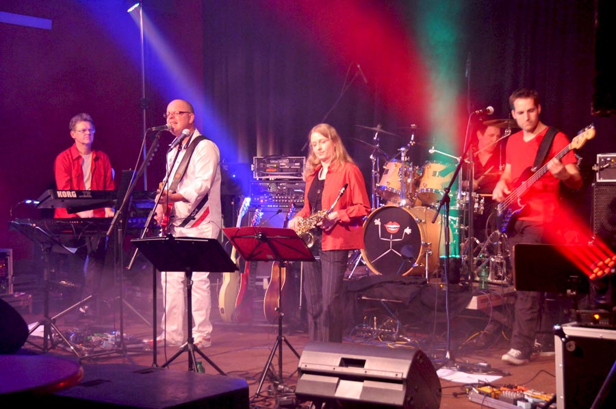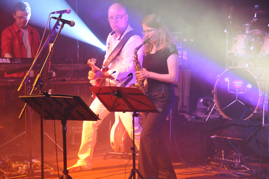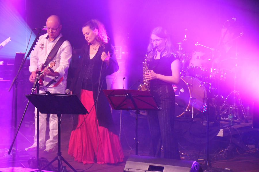 Es sind nur wenige Augenblicke notwendig und die Abstimmung zwischen den Musikern ist so perfekt, als ob sie bereits seit ewigen Zeiten gemeinsame Auftritte performen. Natürlich sind Kurt Härtl die Stücke von Backdoor Connection bekannt, keine Frage, doch gewiss ist schon eine gehörige Portion Professionalität notwendig, um sofort und unmittelbar den „grove“ der Band zu erkennen und sich entsprechend einzubringen. Es gelingt vorzüglich, keine Frage. Auch erste Soli gelingen geradezu perfekt. So folgen die Songs „I know“, „Sunrise“, „Pictures“ und „Pure Energy Part II“. Zwischen durch gibt es kleine Hinweise auf die Entstehungsgeschichte der Band, einzelne Stücke und deren Entstehung werden erläutert. Zwischendurch viel Applaus vom begeisterten Publikum. Zeit auch den dritten Gastmusiker mit einzubinden: Carolin Roth.