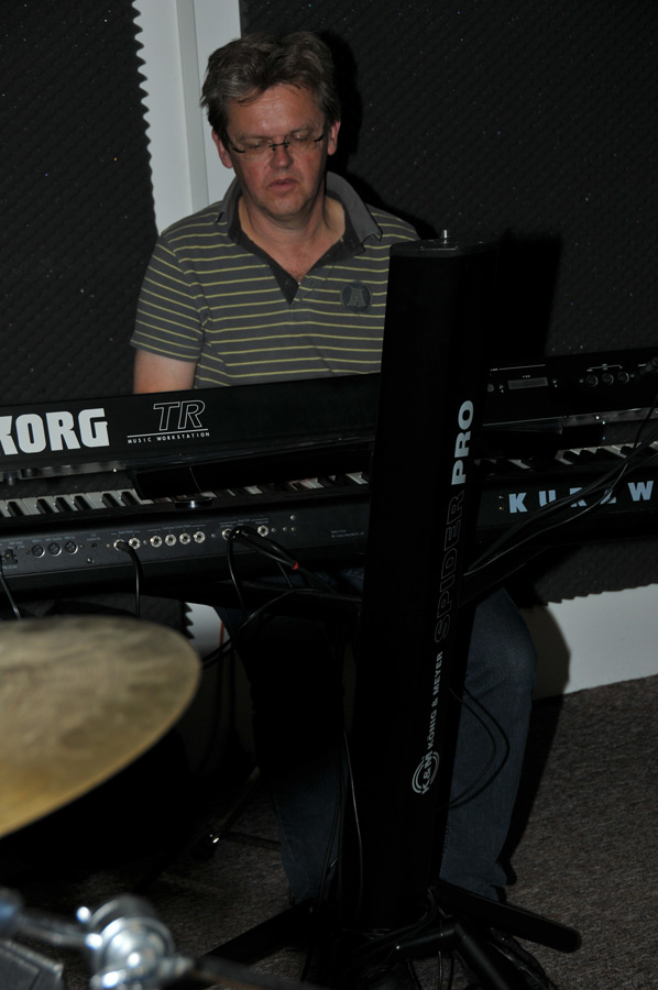 Gegen 20.00 Uhr waren dann alle Bandmitglieder zur Probe anwesend und nach kurzem Soundcheck der Instrumente und Verstärkeranlagen ging es gleich zum geplanten Programm, das die folgenden Eigenkompositionen enthalten wird: