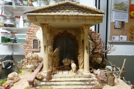 Oft im Mittelpunkt einer Verkaufsbude liebevoll aufgebaut, gibt es zahlreiche Modelle zur Weihnachtsgeschichte um die Geburt des Messias.