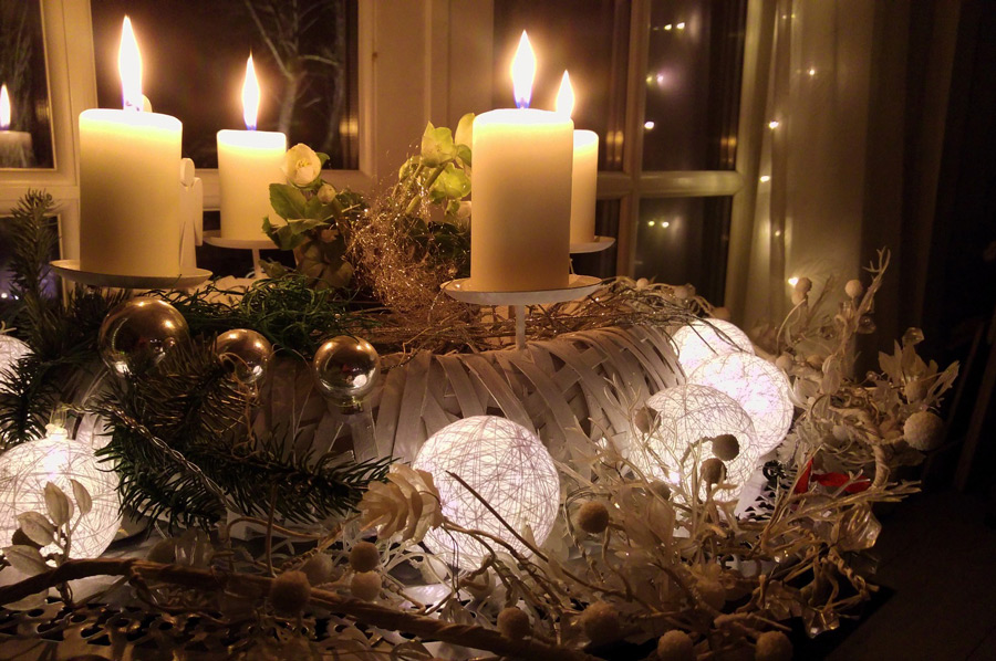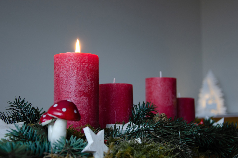 Auch sollen die Kerzen immer nebeneinander, nicht gegenüberliegend, entzündet werden, so die Tradition. Auch sollen Adventskerzen am Kranz immer entgegen der Uhrzeigerrichtung entzündet werden. Trotz vieler Nachfragen, konnte wir das „warum“ nicht beantwortet bekommen.