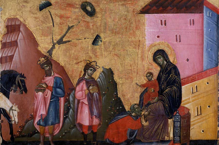 Die Geschichte von den Heiligen Drei Königen gehört zu den großen Erzählungen der Christenheit. Für das Volk waren die drei Könige mit ihrer phantastischen Menagerie jahrhundertelang so etwas wie ein religiöser Zirkus Krone: Das exotisch Fremde hielt seinen Einzug in die Frömmigkeit, und das zauberhaft Andere lagerte in der ansonsten vertrauten, weil ins Heimische transportierten biblischen Szenerie. Die Krippenschnitzer, die Fassmaler und Vergolder haben sich seit jeher mit den drei Königen am meisten Arbeit gemacht. Im Heiligen Römischen Reich deutscher Nation galten sie als Reichsheilige, sie waren den deutschen Königen und Kaisern Vorbild und Fürbitter, weshalb diese nach ihrer Krönung in Aachen nach Köln zogen, zum Gebet vor dem Dreikönigsschrein.