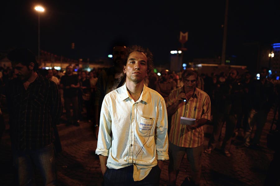 Wenn dieser Platz allerdings seit Tagen den Hintergrund massiver Proteste bildet und zumindest die ausländische Presse über die sozialen Netzwerke aufmerksam geworden sind, kann das völlig anders aussehen: Erdem Gündüz, am 18. Juni 2013 als "Der stille Tänzer" bekannt geworden, verharrte schon einige Stunden reglos mitten auf dem Istanbuler Taksim, den Blick auf die riesigen türkischen Fahnen am Atatürk-Kultur-Zentrum gerichtet, bevor Polizisten auf dem Platz realisierten, dass der einsame Mann im weißen Hemd ein Demonstrant sein musste. Etwa acht Stunden lang hatte er das Porträt des Staatsgründers der modernen Republik Türkei, Mustafa Kemal Atatürk angestarrt.