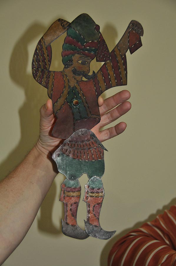 Mit einer Lichtquelle, die von hinten auf die aus Leder hergestellten Figuren leuchtet, wurden deren Schatten auf eine Leinwand oder einen Vorhang projektiert, so das dort durch das Bewegen der Figuren Schattenspiele gezeigt werden konnten. So entstand diese Kunst der östlichen Kultur, über die bis heute verschiedene Legenden erzählt werden.