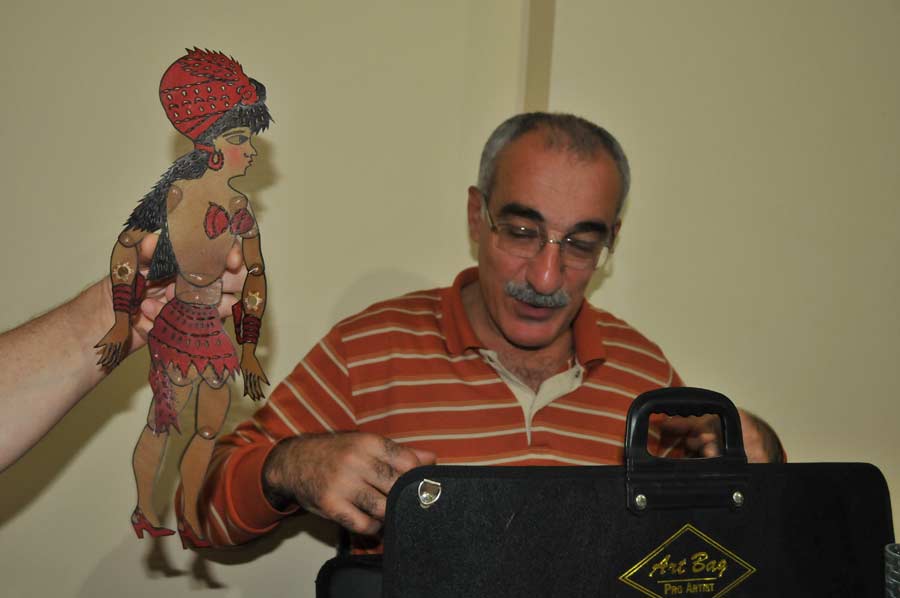 Traditionell wurde das Schattenspiel während des Fastenmonats Ramadan und bei Beschneidungsfesten aufgeführt. Die Aufführungen fanden in Kaffeehäusern, in Privatwohnungen wohlhabender Bürger, aber auch am Sultanshof statt. Die Spielfiguren bestehen aus gefärbtem, durchscheinendem Rinder- oder Kamelleder, sind in sich beweglich und meist 20-40 Zentimeter hoch. Sie werden gegen ein mit Öllampen oder Kerzen erleuchtetes Gewebe gedrückt und mit Stöcken bewegt.
