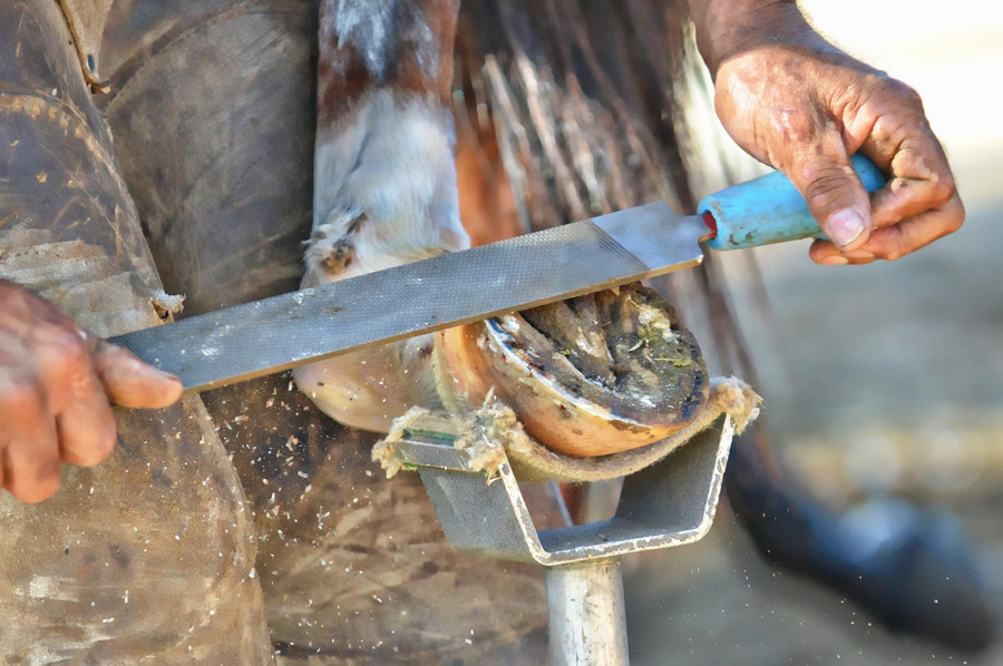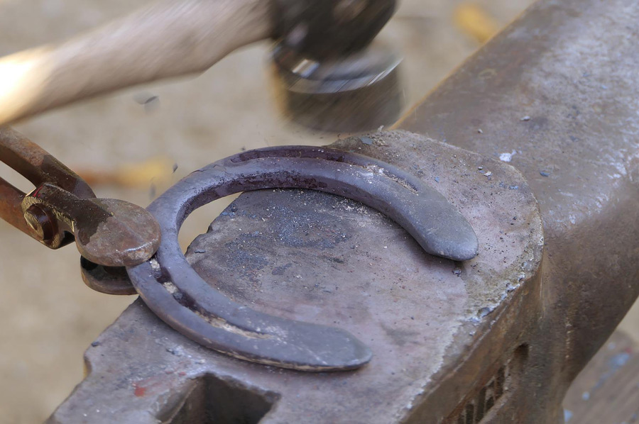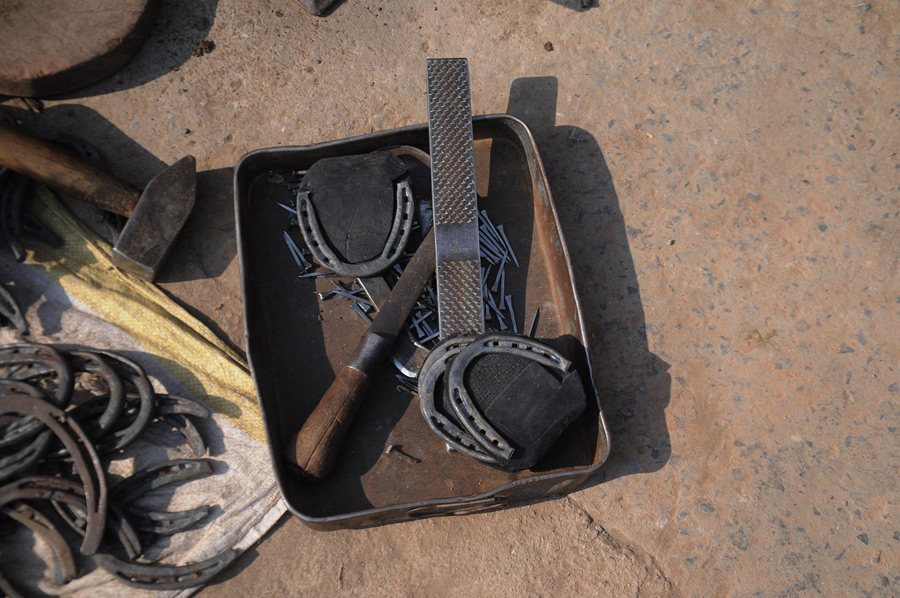 Wenn Pferde zur Arbeit an Fahrzeugen als Zugpferde eingesetzt werden oder wenn Pferde auf hartem Boden zum Reiten eingesetzt werden, werden die Hufe schneller abgenutzt als sie nachwachsen können. Hier beginnt das Arbeitsfeld des Hufschmieds. Da mit dem Anbringen des Hufeisens natürlich der Wachstumsprozess der Hufe nicht aufhört, sollte Hufeisen in regelmäßigen Abständen abgenommen und die Hufe ausgeschnitten werden. Wenig zur Arbeit eingesetzte Pferde oder Reitpferde, die nur auf weichem Untergrund geritten werden, brauchen keine Hufeisen. Allerdings muss auch hier der Fachmann regelmäßig die Hufe ausschneiden. Frei lebende Pferde, wie wir sie auch schon in Ibradi auf der Yaila beobachten konnten, brauchen natürlich ebenfalls keine Hufeisen.