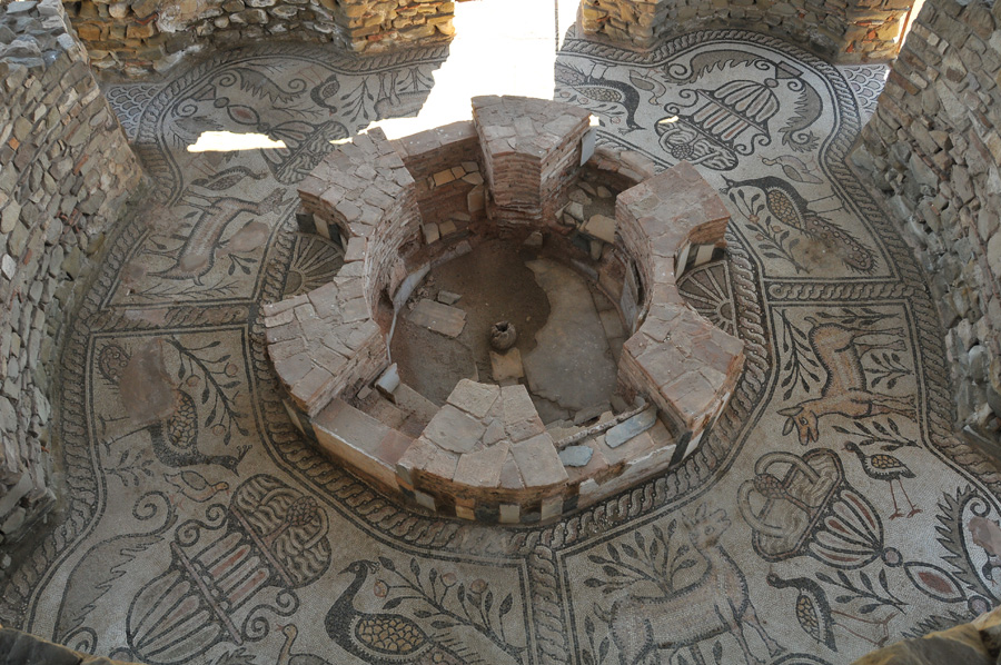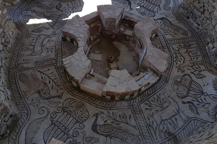 Auch im frühen Christentum spielte der Pfau in der Symbolik eine bedeutende Rolle, wie hier in den Bildern in den Ausgrabungen der Mosaike von Stobi zu sehen ist