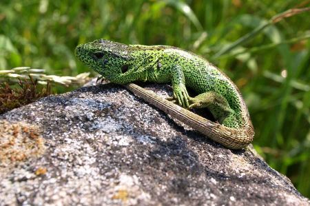 In Deutschland sind leider nur fünf Eidechsenarten heimisch, sie zählen zu den Reptilien, sprich Kriechtieren. Eidechsen haben einen eher länglichen Körperbau, der oftmals an Schlangen erinnert. Allerdings besitzen sie vier Beine, mit denen sie recht schnell laufen können. Ihre Haut zeigt eine schuppenartige Struktur, die von Zeit zu Zeit abgestreift wird, dem Häuten. Darunter hat sich schon eine neue Hautschicht gebildet. Die bunteste von ihnen, die Smaragdeidechse, kommt allerdings nur in einigen warmen Regionen in Süddeutschland und in Brandenburg vor. Sie ist übrigens nach der Blindschleiche auch unsere zweitlängste Echse. Weitere vier Arten sind auch bei uns heimisch: Die Mauereidechse, die Zauneidechse, die Waldeidechse und die Kroatische Gebirgseidechse.