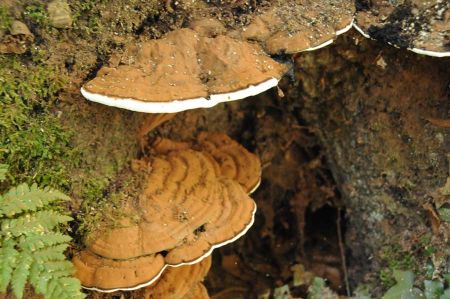 Geradezu ein Paradies für Baumpilze aller Art. Uns hatte es der Zunderschwamm besonders angetan, da er sich an einigen Bäumen fast in Form einer Treppe angesiedelt hatte, die fast schon zum Besteigen der Bäume einlud (was wir natürlich nicht getan haben, allein schon um die Pilze nicht zu schädigen). Die Oberflächen der Fruchtkörper des Zunderschwamms war so fest und hinterließ einen derart stabilen Eindruck, das dieser Vergleich als durchaus treffend zu bezeichnen war.
