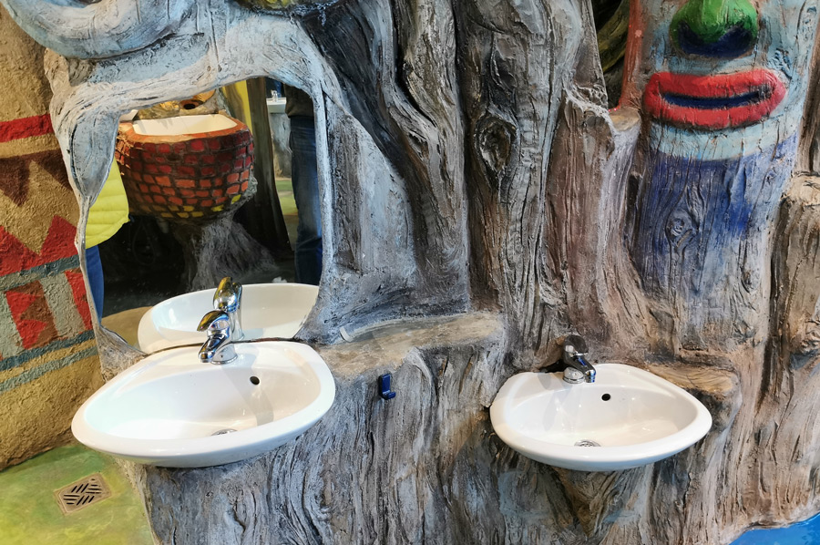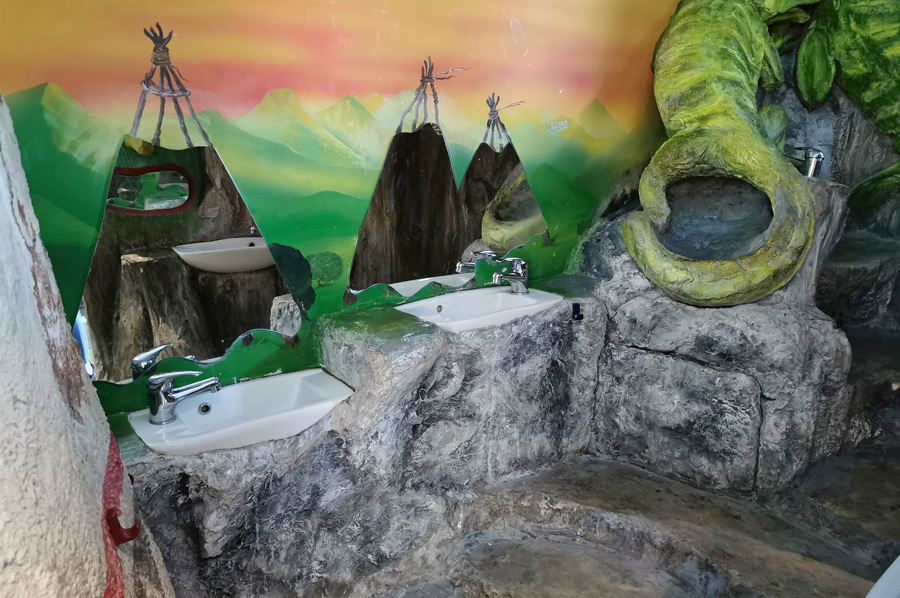 Oftmals ist gerade bei Kindern eine besondere dazu besondere Motivation notwendig, die dann kräftige Unterstützung erhält, wenn die hygienischen Einrichtungen noch dazu kindgerecht ausgestaltet sind. Hier kann man den Campingplatz Gitzenweiler Hof nur als Vorbild bezeichnen, denn selten wir haben eine solch motivierende Einrichtung noch nicht erlebt. Fast wären wir noch selbst zur Erprobung noch eine Runde Zähneputzen gegangen.