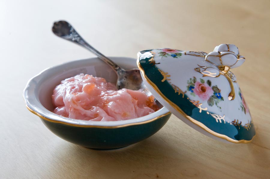 Konsistenz dieser geleeartigen Masse zu erzielen. Speisestärke war im späten 19. Jahrhundert ein recht ungebräuchliches Material in der europäischen Küche. Anstelle es zu verspeisen wurde es zum Pudern von Perücken gebraucht, darin liegt der Grund, warum der königliche Konditor Friedrich Unger das Wort “Haarpuder” in seinen Rezepten für Turkish Delight benutzt.