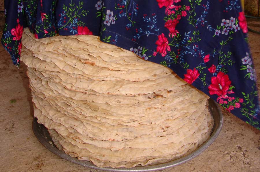 In der Türkei, im Iran und den angrenzenden Ländern gibt es neben ähnlich, dünnen Fladenbrot "Lawasch", die auf türkisch auch Yufka genannt werden, auch mehrere Zentimeter dicke Fladenbrote aus Hefeteig, in der Türkei Pide genannt werden. Die griechische, etwas dünnere Variante heißt Pita. Verständlicherweise haben sich im Laufe der Geschichte verschiedene Varianten herausgebildet, die auch weitere Zutaten aufweisen. Unsere Dörflerinnen verwendeten nur Mehl, Wasser und etwas Salz, das von Hand verknetet und dann zu einem etwa faustgroßen, flachen Fladen geformt wurde.