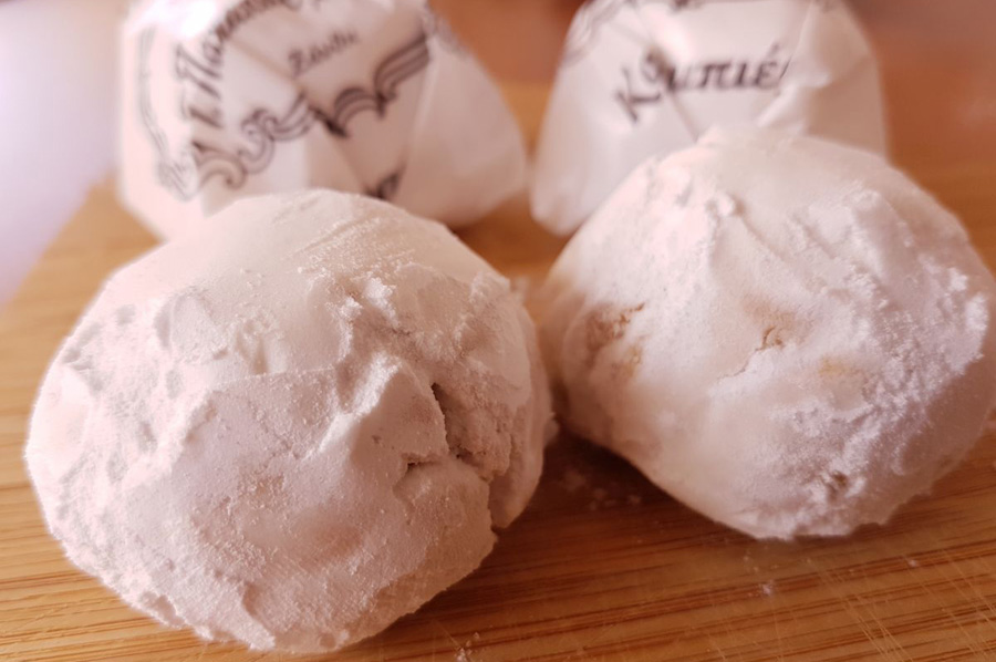 Einige der besten Momente während der Reisen durch die verschiedene Länder entstehen immer wieder bei der Entdeckung oder dem Erlernen unerwarteter Geschmäcker oder Menüs, von Rezepten oder anderen lokalen Spezialitäten, überwiegend mit oder durch Einheimische entdeckt. So hatten wir noch in der Türkei von ganz besonderen "Kourambiedes" Keksen aus Xanthi gehört, mit Puderzucker bestäubte Mandelkekse, die oft auch mit Vanille-Aromen versehen sind und die ein Muss auf jedem griechischen Tisch während der festlichen Jahreszeit sind, gleich, ob es Weihnachtszeit oder Ostern ist.