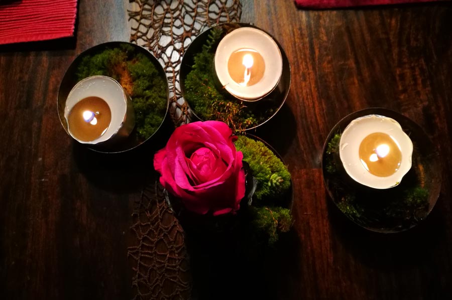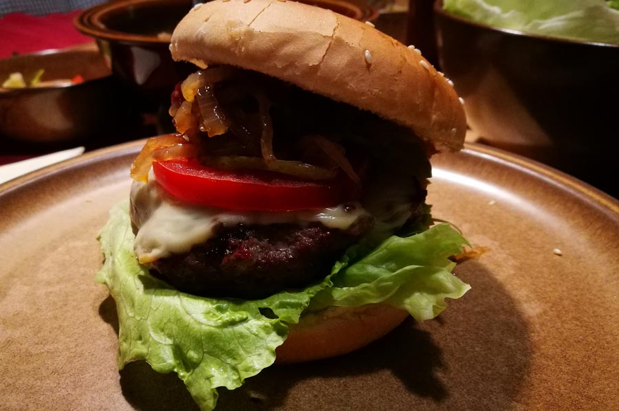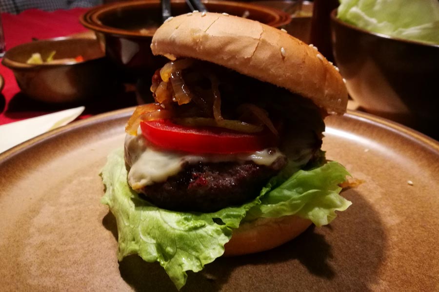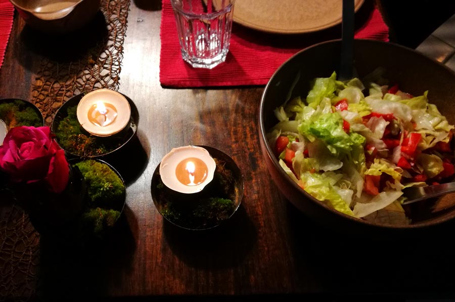 Den Einstieg in den Abend bildeten dabei ein Abendessen an dekorativ geschmückter Tafel mit typisch amerikanischen Hamburgern, deren Zusammenstellung jeder selbst gestalten konnte, die typische Rindfleischscheibe dazu selbst angemacht und auf offenem Feuer gegrillt. Natürlich mit den obligatorischen fast-food Gedanken im Kopf und trotzdem einfach lecker.