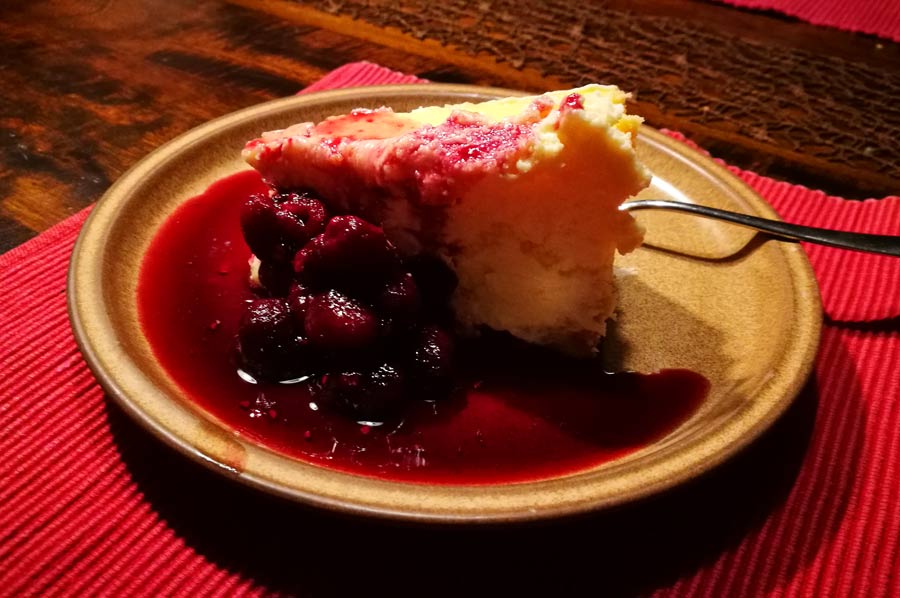 Wenig später und als Einstieg der Reisetourbeschreibung gab es eine absolute Leckerei, den selbst gemachten, echten New Yorker Cheese Cake. Uns hat Geschmack und Konsistenz so begeistert, das wir umgehend nach dem Rezept und Fertigung fragten, das wir an dieser Stelle gern wiedergeben möchten.