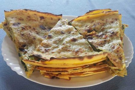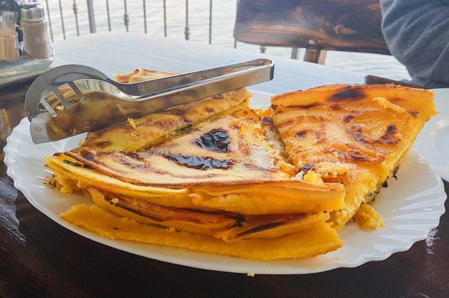 Maispizza mit Lauch oder Spinat am Campingplatz Rino