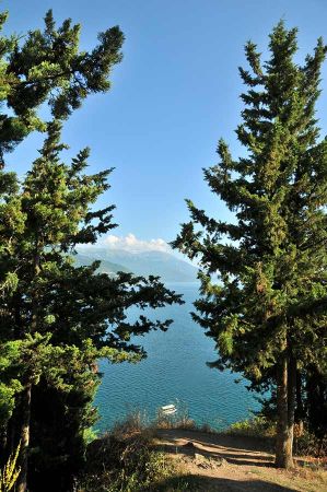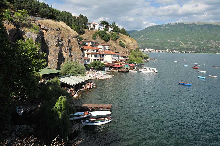 Schon am frühen Vormittag des folgenden Tages hatten wir uns mit Perparims Vater für einen Ausflug in die nahe Stadt Ohrid am gleichnamigen See verabredet. Wir nutzten eine schmale, kurvenreiche Straße entlang des Seeufers, die uns bis in das Stadtzentrum führte.