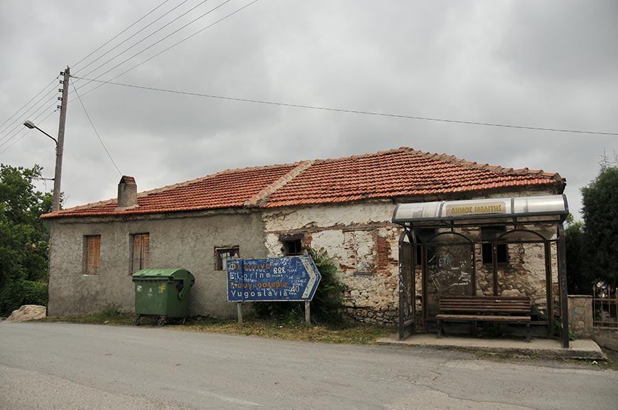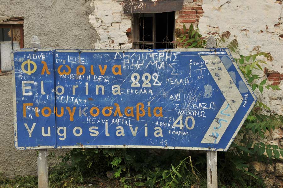 Kurz vor dem Vegerotida See entschieden wir uns dann dafür, auch weiterhin der alten E86 in Richtung Kella zu folgen, trotz der "bestimmenden" Stimme des Navis zur Umkehr fuhren wir nicht weiter geradeaus in Richtung Aminteo. Wenig später sollte die Route dann auch etwas abenteuerlich werden, denn es ging in engen Serpentinen ins Gebirge hinein. In Kella dann stießen wir auf das Hinweisschild, dass der Weg hier nach "Yugoslawien" führt. Ein Straßenschild "überdauert" einen Staat!