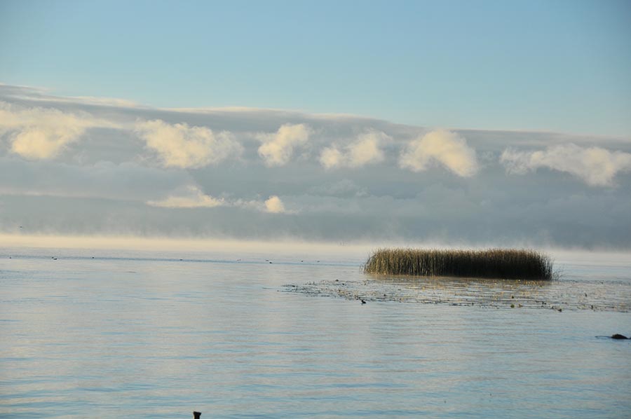Am ganzen Seeufer der Stadt wachsen Schilfrohre