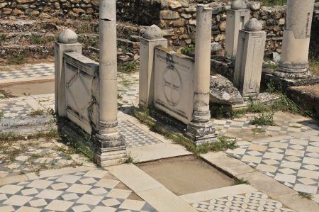 Sowohl in der großen Basilika als auch in weiteren Gebäuden sind während der Sommermonate einige der Mosaikflächen offen gelegt, so das Besucher sie ausgiebig betrachten können.