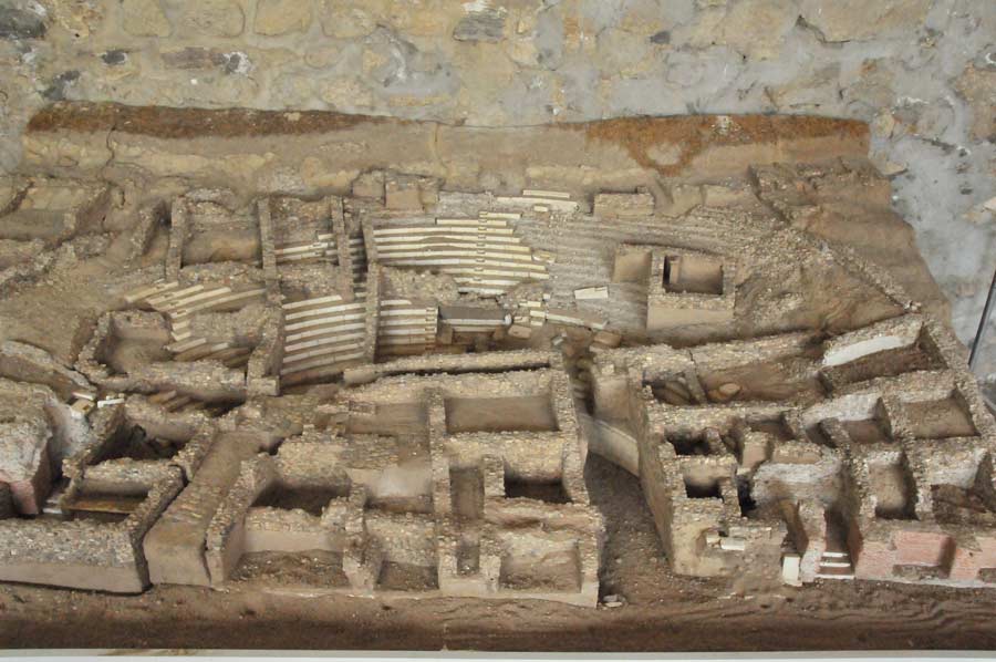 Bei Ausgrabungen in den dreißiger Jahren, dann später zwischen 1960-1964 und 1970-1975 wurden Teile der befestigten Akropolis, das Theater, die Bäder, zwei Basiliken mit spätantiken Mosaiken sowie Reste von einigen Privathäusern freigelegt. Die kleinere Basilika und das zugehörige Baptisterium wurden teilweise restauriert, ebenso die Überreste von Wohnhäusern aus hellenistischer Zeit.
