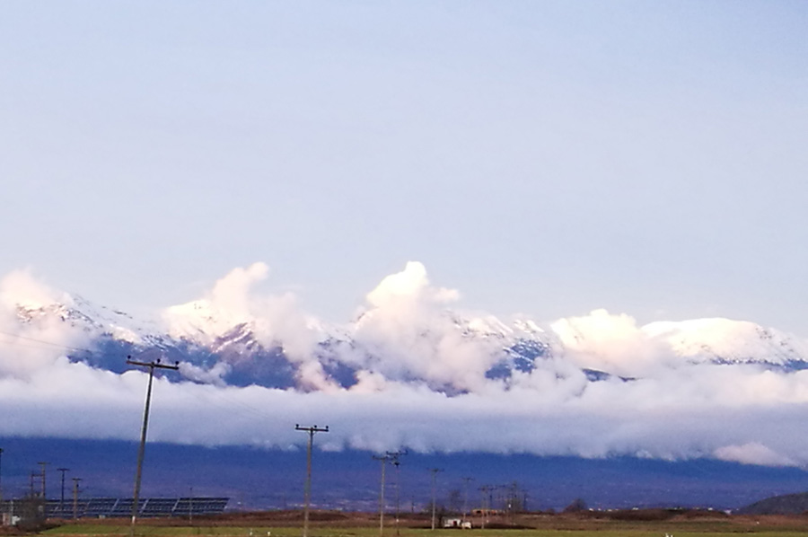 Auf beiden Seiten des wichtigen Grenzübergangs hatten sich bereits lange LKW Staus gebildet, die auf ihre Abfertigung warteten. Freundliche Grenzbeamte, die uns abfertigten und auch passieren ließen (den Versuch des Durchkommens war es allemal wert), hatten uns auf die komplette Sperrung hingewiesen und uns dann auf dem Weg zurück auch den Umweg über Bogdanci zum Grenzübergang bei Dojran erklärt, einem kleinen Grenzübergang am Dojran See. So befuhren wir die Landstraße R 1109 bis zur Abzweigung nach Dojran, wo es auf der R 1105 bis zum Grenzübergang ging, der sich als wirklich überfüllt und eng herausstellen sollte. Der Blick auf den See bzw. auf die Berge im Hintergrund hingegen war von beeindruckender Schönheit. Leider verhinderte die einsetzende Dämmerung weitere Fotos, so das wir umgehend beschlossen, im Frühjahr erneut zu kommen.