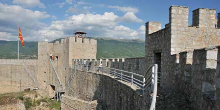 Schon bei der Anreise zum Campingplatz Rino in Struga hatten wir die mächtigen Mauern der Festungsanlage hoch über dem Altstadtkern von Ohrid bewundert.