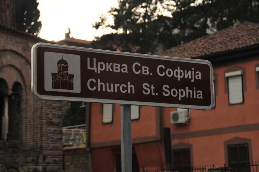 Die Sophienkirche oder Crkva Sveta Sofija im Zentrum wurde in der Amtszeit des Erzbischofs Leo von Ohrid, eines Klerikers griechischer Abstammung, zwischen 1037 und 1056 auf den Fundamenten einer frühchristlichen Kirche erbaut.