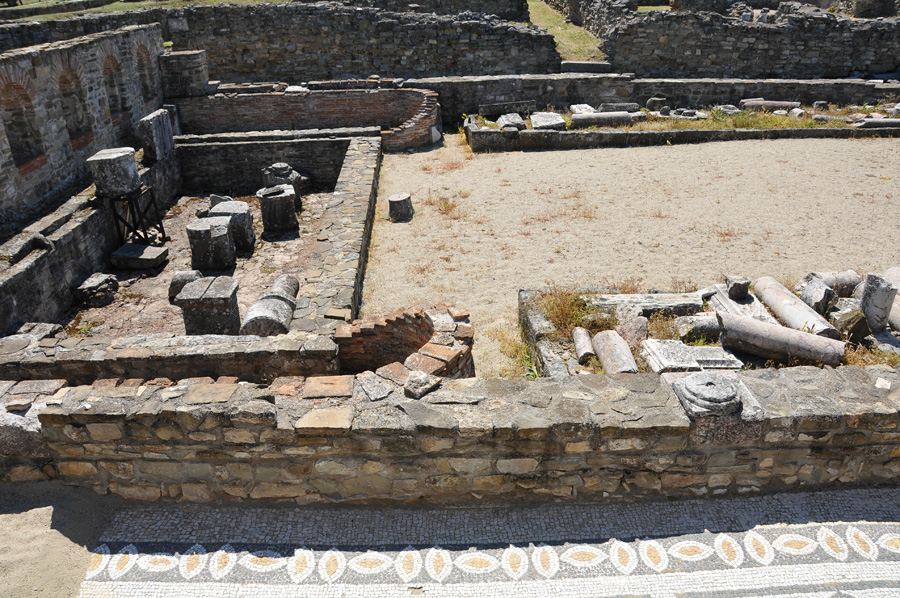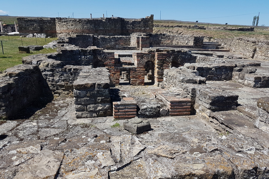Direkt an der Autobahn Belgrad - Thessaloniki gelegen bietet das riesige Grabungsgelände der unterschiedlichen antiken Epochen mit den wirklich hervorragend erhaltenen und konservierten Mosaiken auch ein kleines Cafe sowie Toilettenanlagen an, so das auch die Übernachtung vor Ort mit der notwendigen Grundausstattung Frischwasser und Toilettenanlage möglich ist.