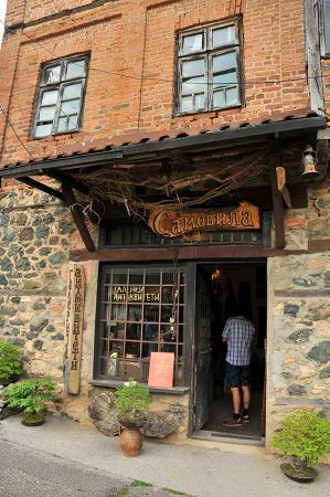 Wir unterbrachen unseren Rundgang durch die engen und teilweise steilen Gassen des Dorfes, um in einem wirklich toll eingerichtetem Restaurant einen mazedonischen Cappuccino mit Eiskrem und Baglava zu verspeisen. Hmm, sehr lecker. Allein die Zusammenstellung deutet schon auf die internationale Gästeliste hier im Ort hin.