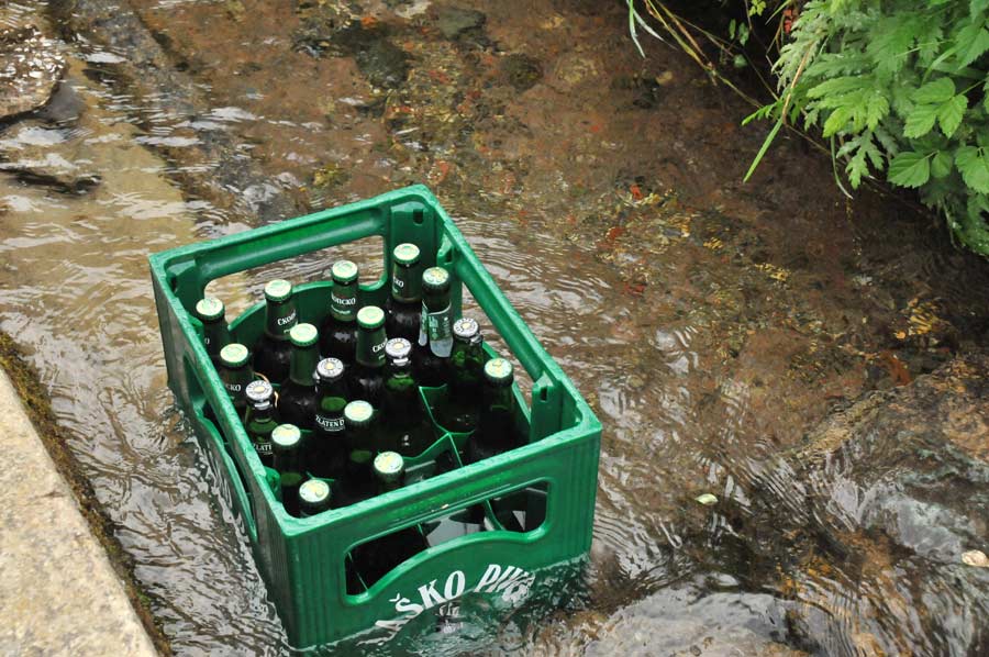 Nach der Besichtigung der Quellen und Wasserfälle waren wir noch nicht sehr weit in Richtung Dorfzentrum Vevčani gegangen, als uns zunächst ein Kiosk an der Dorfstraße auffiel, der seine zu verkaufenden Kästen mit Bier im Quellwasser kühlte.