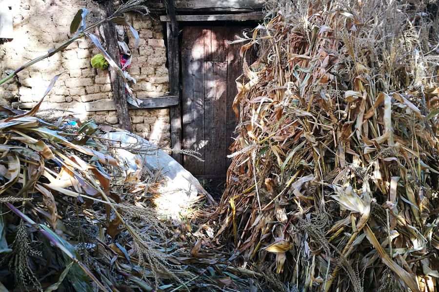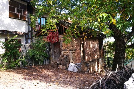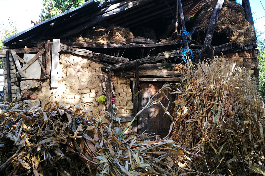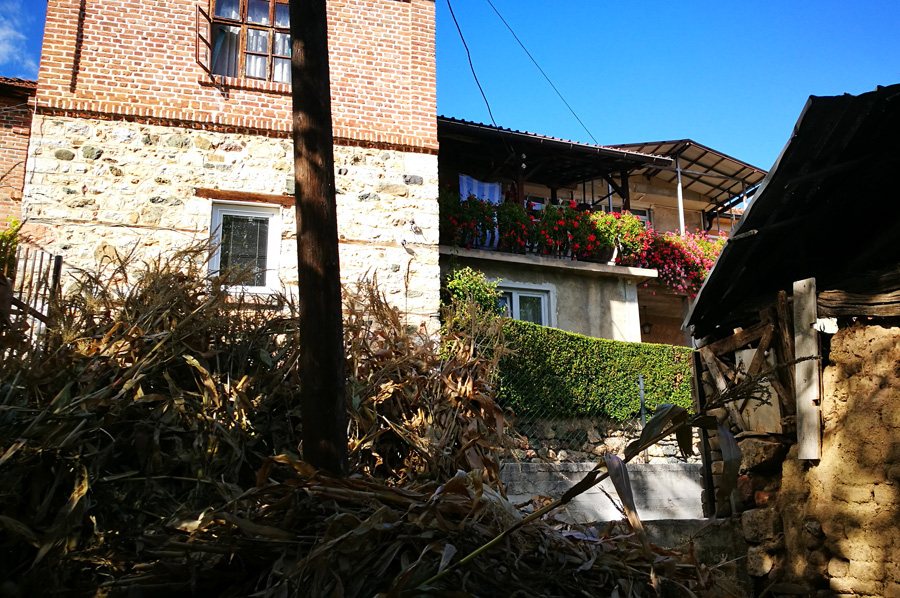 Unser Rundgang durch den Ort Vevčani zeigte schon gleich zu Beginn, das eine solch ausgerichtete Projektierung als Ökodorf in weiten Teilen lokal von der Bevölkerung zum Eigenbedarf schon praktiziert wird, überall sind Paprika zum Trocknen aufgeschnurt, sind Knoblauch und Zwiebeln zu Zöpfen gebunden oder in großen Säcken aufgehängt, steht der Mais zu Garben gebunden vor den Lagerstätten und Heu im Schober oberhalb der Viehställe.