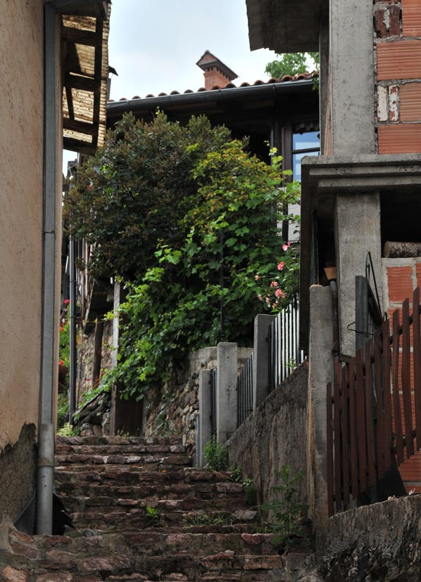 So war uns während des Rundgangs durch das Dorf Vevčani mit seinen engen Gassen und der uralten Bebauung ein gepflasterter Pfad aufgefallen, der entlang des Bachlaufs das halbe Dorf umrundet. Sicherlich ist eine Fortsetzung des Fußwegs für die Zukunft geplant.