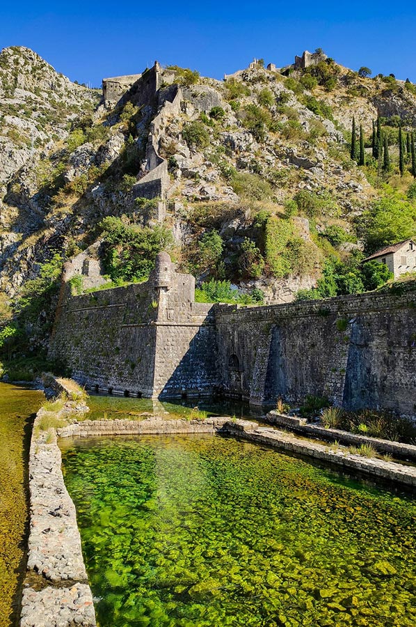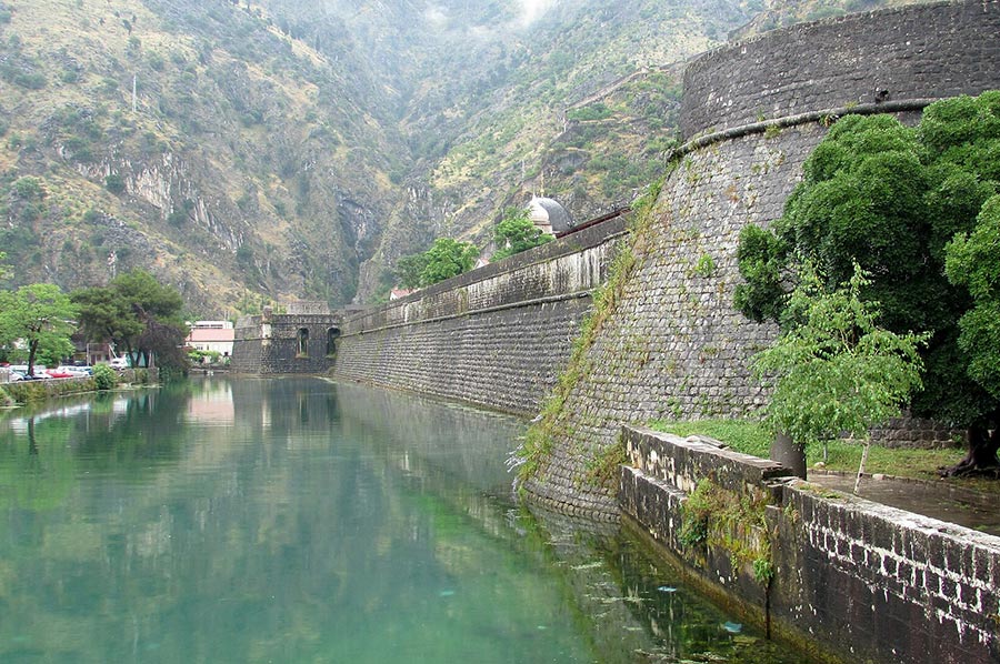 Ein Großteil der mittelalterlichen Festungen von Kotor sind erhalten geblieben. Die Stadtmauern erstrecken sich über 4,5 km, sind 2 Meter bis zu 15 Meter dick und erreichen eine maximale Höhe von 20 Metern. Das Haupttor stammt aus dem 16. Jahrhundert. Das Südtor, das älteste von Kotor, wurde in Teilen bereits im 9. Jahrhundert erbaut.