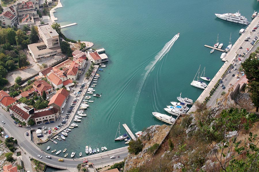 Kotor liegt etwa 50 Kilometer westlich von Nikic, am Fuße des steilen Lovcen-Massivs, das sich auf 1.749 Meter erhebt, klar, dass die umgebenden Berge immer wieder herrliche Aussichtspunkte auf die Stadt und die Bucht ermöglichen.