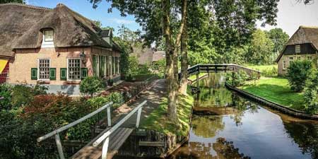 Giethoorn - Nahezu autofrei, sehr idyllisch und unglaublich romantisch – so kann man das kleine Dorf Giethoorn in Holland wohl am treffendsten beschreiben. Rund acht Kilometer schlängelt sich ein Kanalwegenetz durch das Dorf, das am besten vom Boot aus erkundet wird.