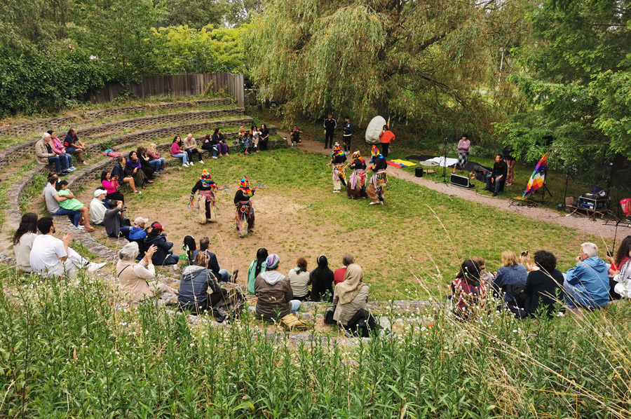Nicht weit vom Campingplatz entfernt gibt es ein riesiges Kulturzentrum mit verschiedenen Gebäuden und Freiflächen, einem Amphitheater und Werkstätten, deren Besuch einfach lohnenswert ist. Wenn man dann, so wie wir in diesem Fall, auch noch auf eine Veranstaltung trifft, ein Glücksfall …., der sich zu einem längeren Aufenthalt ausdehnen sollte, denn die Gastfreundschafft der anwesenden Peruaner war überwältigend, so dass wir auch zum Essen blieben.