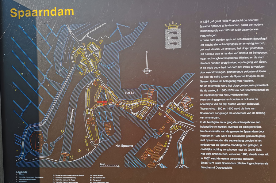 Der IJdijk (IJ-Deich) war zeitweise die einzige Landverbindung zwischen Haarlem und Amsterdam, sprich also auch Fahrweg und Handelsroute. Auch wir nutzten mit den Rädern diese Deichkrone als Fahrweg. Die Bewohner von Spaarndam lebten vom Wegzoll und von der Fischerei. Zwischen 1812 und 1927 war Spaarndam sogar eine eigenständige Gemeinde. Durch Einpolderungen und die wachsende Bevölkerungszahl in der Randstadt, dehnte sich der Ort im 19. und 20. Jahrhundert vor allem im Osten und Süden stark aus. Heute leben in Spaarndam vor allem Berufspendler.