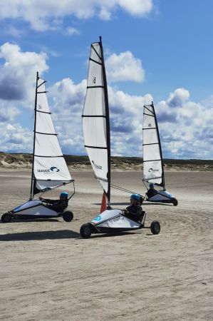 Darüber hinaus wird Strandsegeln auch auf den Ostfriesischen Inseln Borkum, Juist, Norderney und Langeoog ausgeübt. Ein ebenfalls gut geeignetes Revier mit ausgewiesenem Strand für das Strandsegeln und einem ansässigen Verein liegt im Süden der Insel Rømø in Dänemark am Sønderstrand. Auch auf der ca. 30 km weiter nördlich gelegenen dänischen Nordseeinsel Fanø befindet sich am Strand von Rindby ein 3 km langer, für Surfer, Strandsegler und Kite-Buggies ausgewiesener Abschnitt.