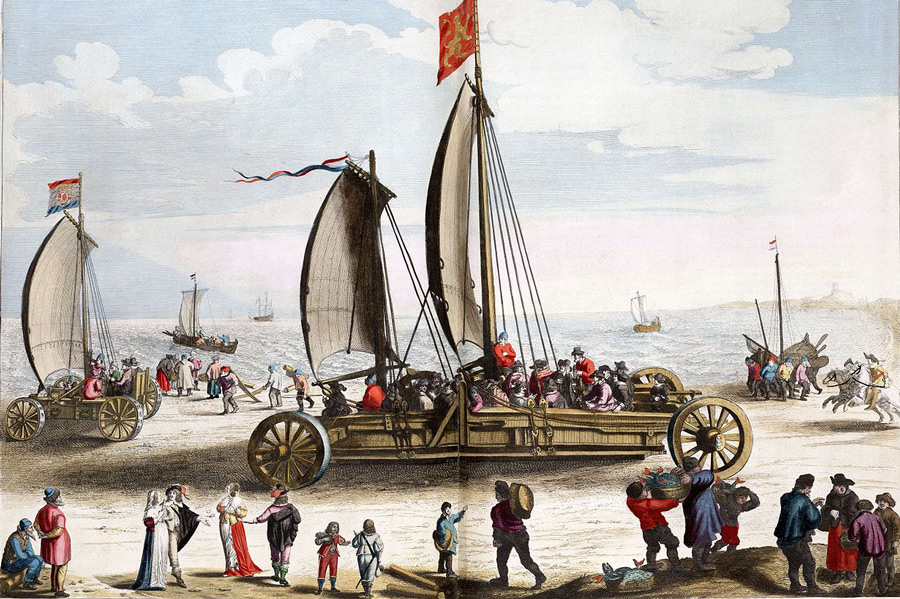 In Europa baute der Mathematiker, Physiker und Wasserbauingenieur Simon Stevin (1548–1620), angeregt von den Berichten über die Landsegler in China, für Prinz Moritz von Oranien den ersten Segelwagen.