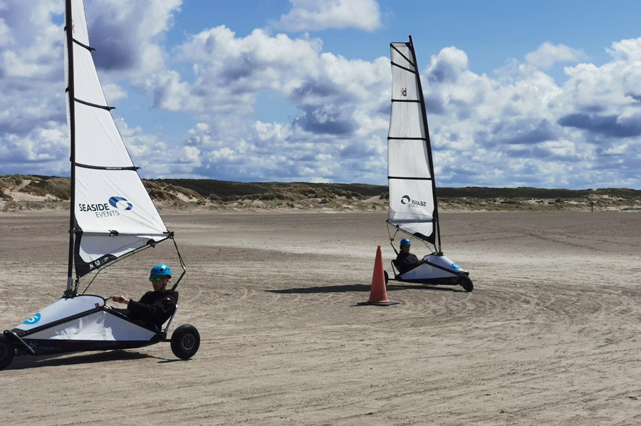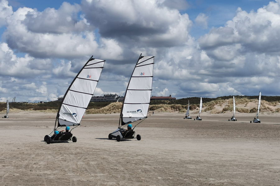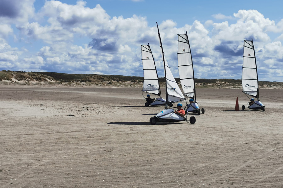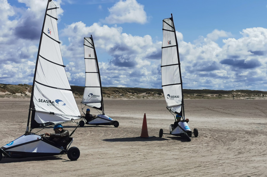 Es werden heute gar nationale und internationale Meisterschaften im Strandsegeln durchgeführt.