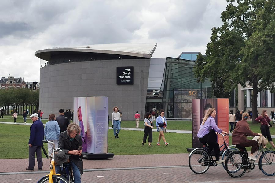 Der moderne Bau des Van-Gogh-Museum befindet sich neben dem Moco Museum und dem Concert Gebouw im Museumsplein unweit des Reichsmuseums, man kann sagen in Sichtweite. Unser Anfahrtsweg mit dem Fahrrad wich auch diesmal nur unwesentlich von der bereits benutzten Route ab, dass Radwegenetz in Amsterdam und herum ist schon wirklich Klasse.