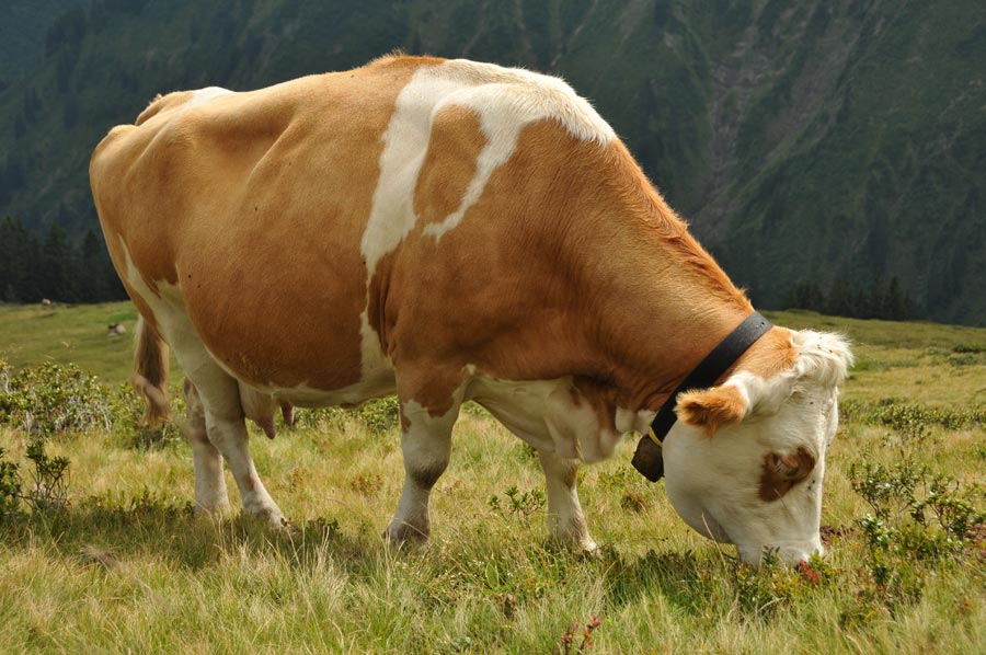 Weiter unten stießen wir auf große Felder mit Blaubeeren, die doch hin und wieder zum Naschen aufforderten. Mehrfach kreuzten wir auf dem Weg auch Almen, die von Zäunen umgeben waren. Durchgänge konnten von Wanderern selbst geöffnet werden, sollten aber auch immer wieder verschlossen werden! An der Unteren Lüchle Alpe stießen wir auf eine Ansammlung junger Kühe, im Norddeutschen mit Bester bezeichnet, die im Spiel große Sprünge auf den steilen Hängen vollziehen konnten. Wir waren erstaunt ob der Beweglichkeit und Sicherheit der Tiere, mit der diese Sprünge ausgeführt wurden. Spontan haben wir sie mit "Gemskühe der Lüchle Alpe" bezeichnet.