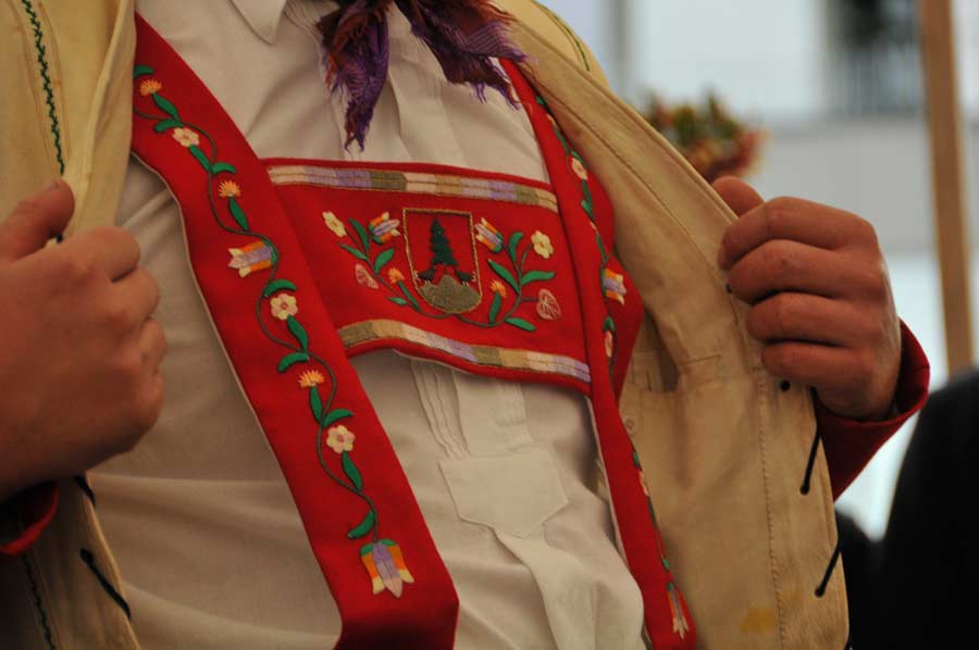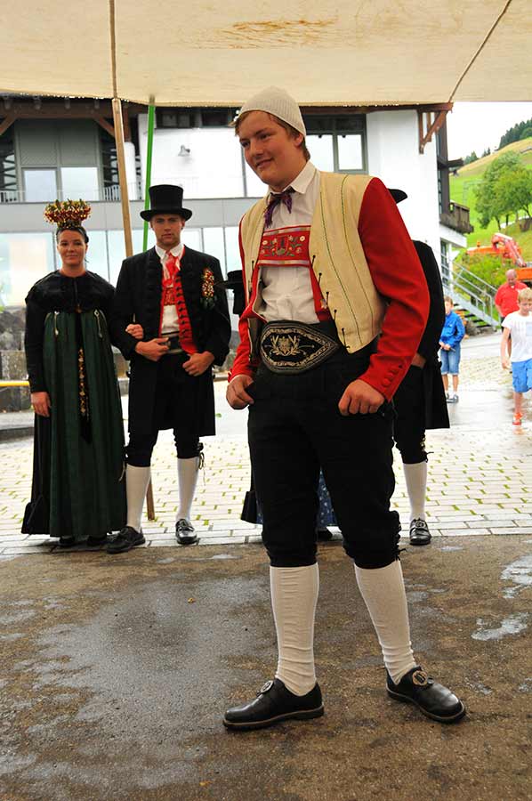 Nach einigen Vorführungen traditioneller Tänze sowie Live-Musik von der zünftigen Kapelle war der große und von uns mit Interesse erwarte Höhepunkt des Festes erreicht: Die Walsertrachten wurden präsentiert und erläutert.