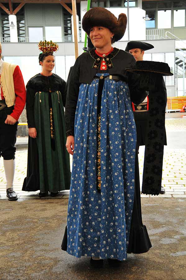 Wichtigstes Kleidungsstück der Frauen ist die Juppa, ein schwarzer, plissierter Überrock. Der Stoff wird von Hand in kleine Falten gelegt - plissiert. Am Saum ist die so genannte “Bsetze”, das ist ein Tuchvollant, der die Falten straff hält und der Tracht etwas Besonderes verleiht; dazu ein Unterrock, der eigentlich ein ganzes Unterkleid ist. Am Oberteil (immer sichtbar) sind Rosen aufgestickt.